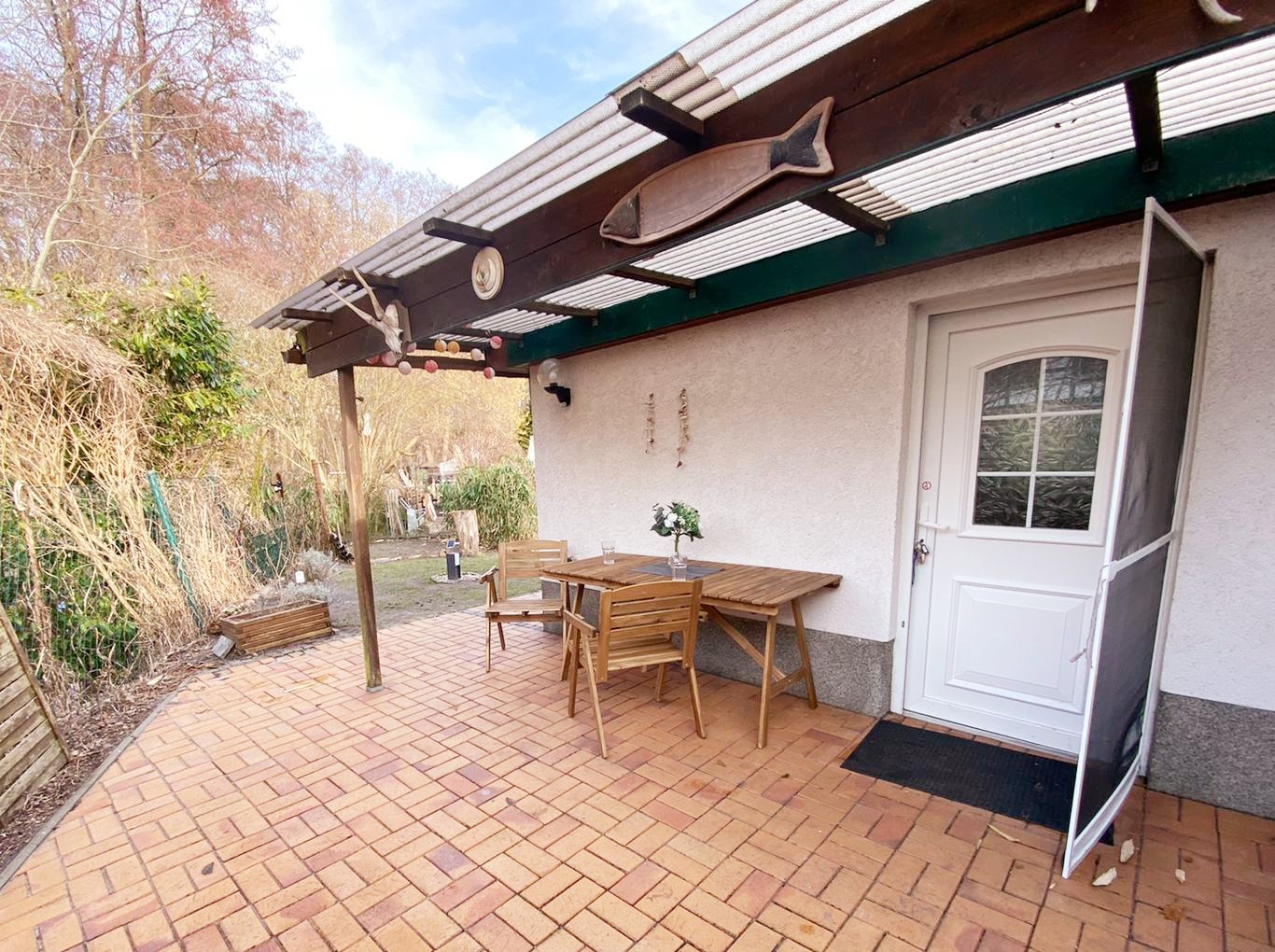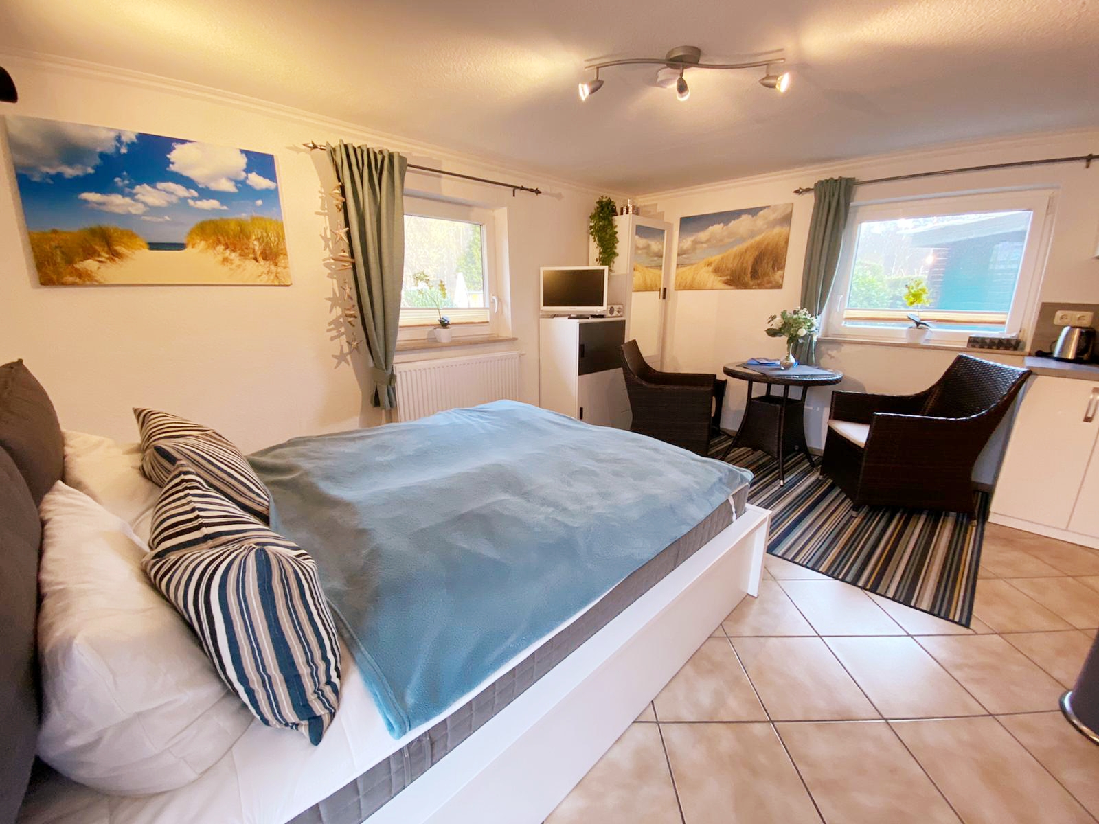Meer oder Natur? Oder doch vielleicht einfach MeerNatur? Diese kleine Sommerlaube mitten in der Natur bietet ihnen beides. Nur 4 Minuten Fußweg und sie sind da wo andere Urlaub machen, am Strand. Diese gemütliche und modern eingerichtete 1-Raum-Wohnung mit ca. 25 m² Wohnfläche und einer sonnigen Terrasse kann mit bis zu 2 Personen genutzt werden. Ein großes Bett von 180x200cm bietet Ihnen Platz zum Entspannen und verweilen. WLAN steht Ihnen hier kostenlos zu Verfügung.