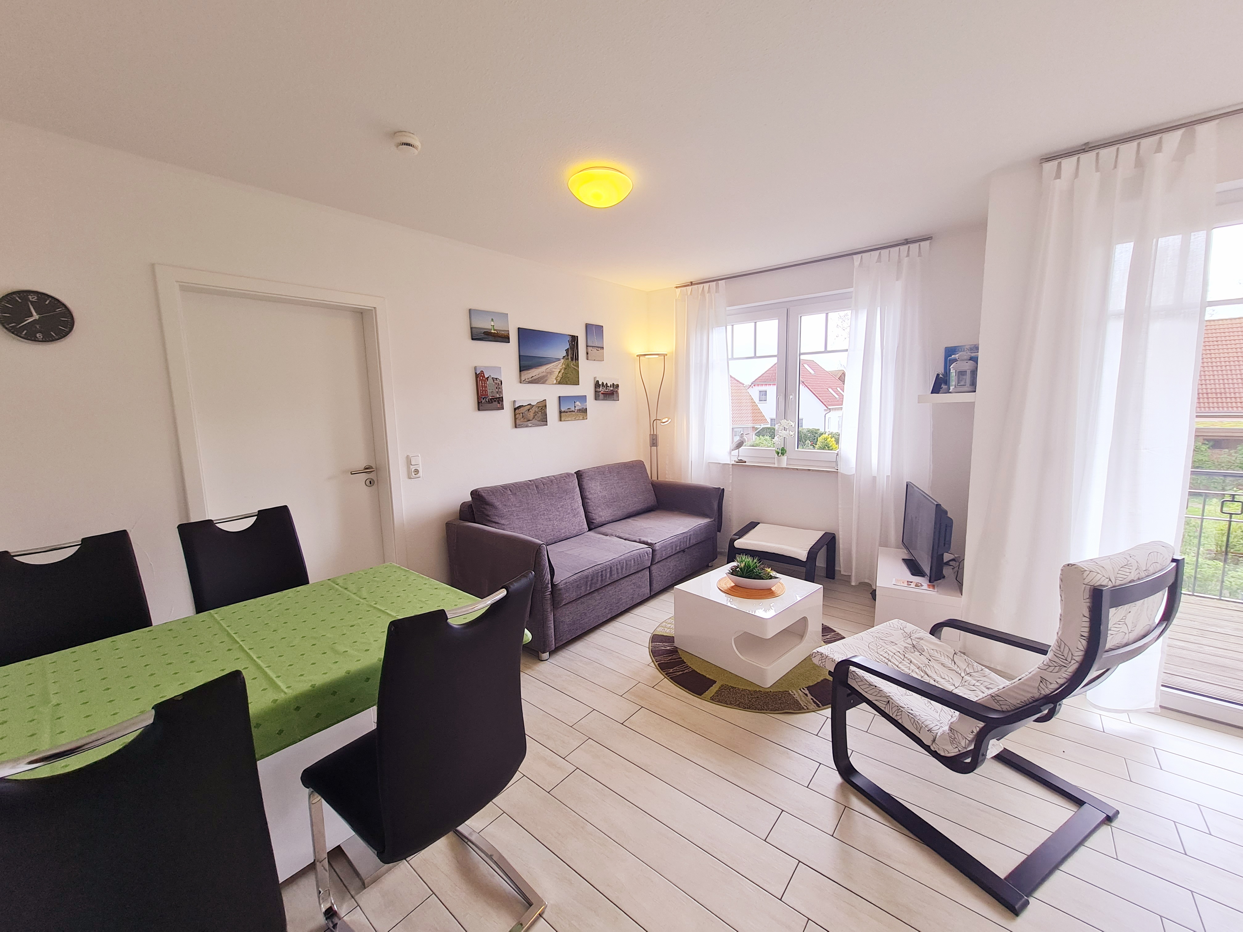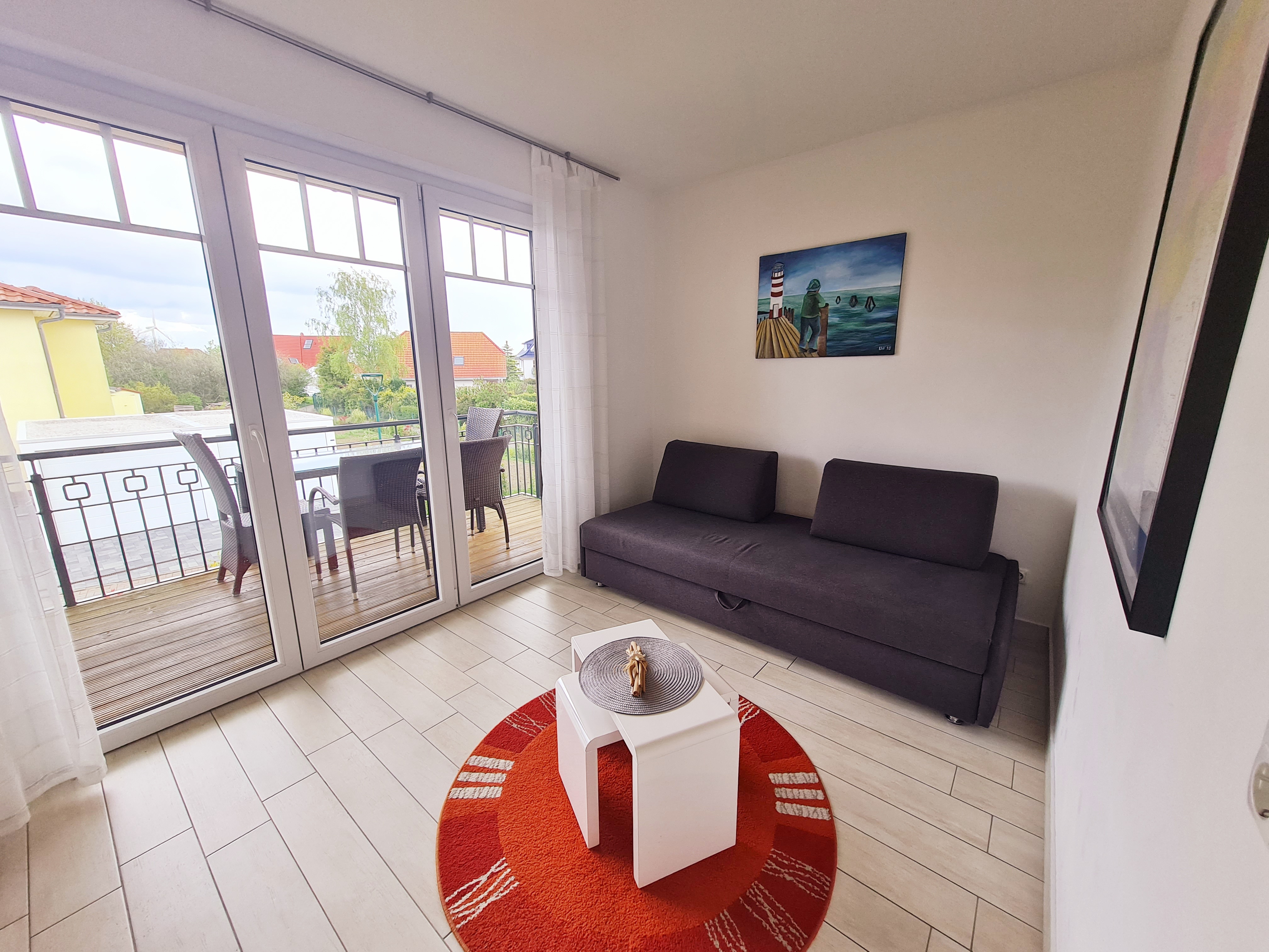 Die modern und zugleich gemütlich eingerichtete 3-Raum-Wohnung bietet auf ca. 66 m² ausreichend Platz für bis zu 5 Personen – ideal für Familien, Paare oder kleine Reisegruppen. Zwei sonnige Balkone in Süd- und Ostausrichtung laden dazu ein, den Tag mit einem Frühstück im Freien zu beginnen oder bei einem Glas Wein entspannt ausklingen zu lassen.