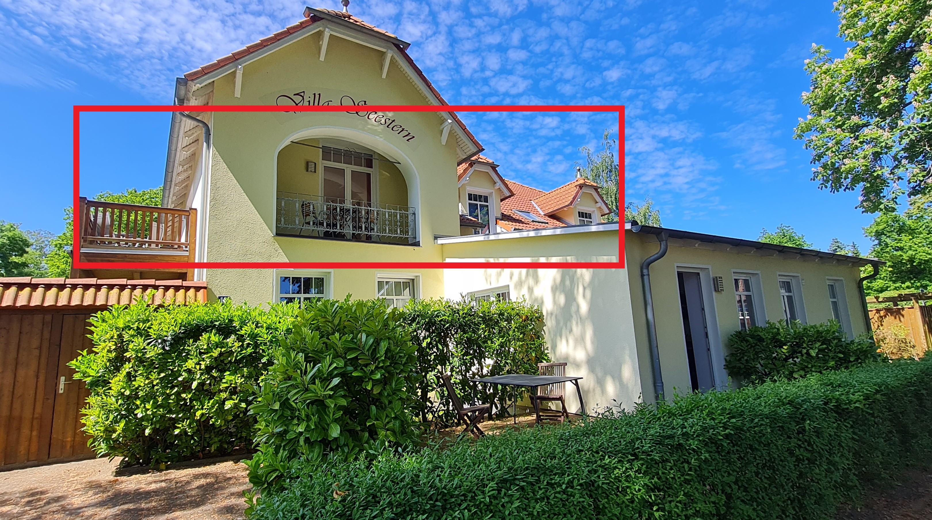 | Balkon: | 2 Balkone, größerer Balkon mit Südausrichtung und Ostloggia, Tisch mit 4 Stühlen, Sonnenschirm, Sonnenliege - ideal zum Frühstücken, Lesen oder einfach nur die Seele baumeln lassen |